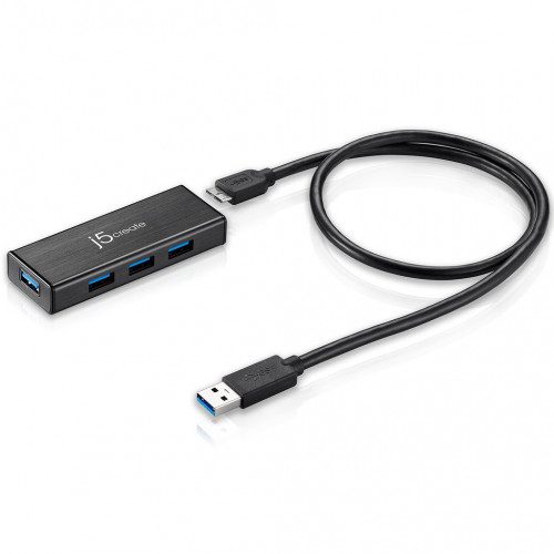j5create JUH340. Interfaz de host: USB 3.2 Gen 1 (3.1 Gen 1) Micro-B, Interfaces de concentradores: USB 3.2 Gen 1 (3.1 Gen 1) Type-A. Velocidad de transferencia de datos: 5000 Mbit/s, Color del producto: Negro, Material de la carcasa: Aluminio. Alimentación: Corriente alterna, Voltaje de entrada: 110 – 240 V, Frecuencia de entrada AC: 50 – 60 Hz. Ancho: 88 mm, Profundidad: 14,8 mm, Altura: 32,8 mm. Cables incluidos: USB