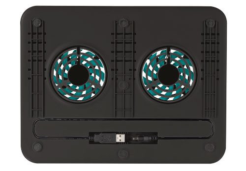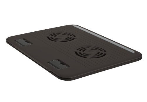 Soporte de ordenador portátil con dos ventiladores silenciosos integrados, que le permite adoptar una posición cómoda mientras escribe y protege frente a sobrecalentamiento. Diseño ajustable a 8 niveles que permite levantar e inclinar la pantalla y el teclado de su ordenador portátil para mayor comodidad. Refrigera el ordenador con mayor nivel de eficacia y protege su mobiliario o piernas del calor. Ideal para cualquier ordenador portátil, netbook o MacBook con tamaños de pantalla de hasta 16″. Ventiladores alimentados por USB: no requiere conexión a la corriente eléctrica. Protectores de caucho para evitar que el ordenador se deslice y se raye. El enchufe y el cable USB pueden colocarse dentro del soporte cuando no se estén utilizando.
