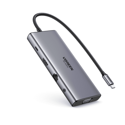 Ugreen 11-in-1 USB-C Hub to 3x USB-C/2x USB-A/HDMI/VGA/RJ45/SD/TF/3.5mm – Gray Acoplamiento Base Gris