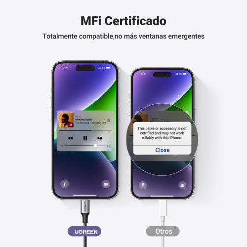 (D)UGREEN CABLE LIGHTNING 1M NEGRO COMPATIBLE IOS 10.3.1 Y POSTERIORES