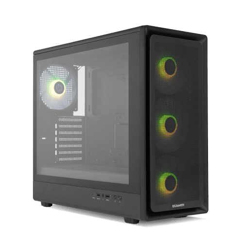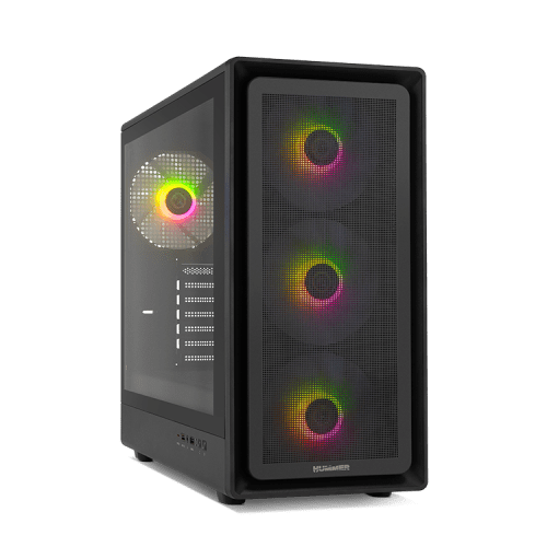 Su frontal mesh, con 3 ventiladores incluidos, ofrece un extra de ventilación que ayuda con la compleja tarea de mantener el PC a temperaturas óptimas cuando alcanza su rendimiento máximo. Además, con su cristal templado lateral podrás apreciar tu configuración en todo su esplendor.