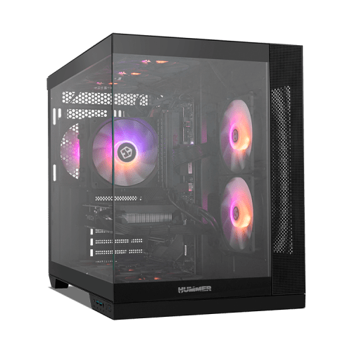 La Nox Hummer Astra NEO con su impresionante estética gaming minimalista se encuentra disponible en dos colores, blanco y negro. Experimenta un espectáculo visual a otro nivel con su ventana lateral panorámica frameless, gracias a sus dos cristales templados uno situado en su frontal y otro en el lateral, dejando la configuración totalmente a la vista.