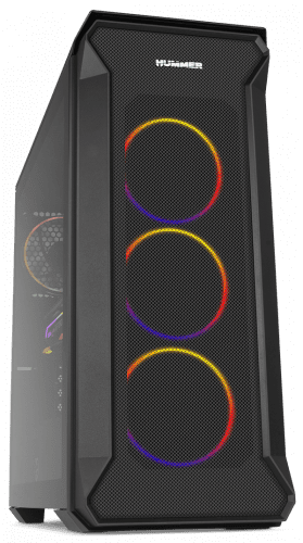 ARGB Lighting Full Tempered Glass ChassisDiseño con cristal templadoUna robusta torre con un original y rompedor diseño que permite crear espectaculares efectos de color gracias a sus cuatro ventiladores ARGB de 120 mm que incluye y que podrás contemplar en todo momento gracias a su panel lateral de cristal templado.Accesos y panel superiorDesde su panel superior podrás controlar el color de sus ventiladores además de conectar hasta 3 USB ya que posee dos conexiones 2.0. y una 3.0 de alta velocidad, y las conexiones de audio.Opciones de almacenamientoHummer Quantum te ofrece amplias posibilidades para una configuración de alto rendimiento. Es compatible con placas base ATX, Micro ATX e ITX y dispone de espacio suficiente para ensamblar dos HDD de 3,5” y siete SSD de 2,5”.Además, para una configuración más limpia, cuenta con un sistema de 29 mm de gestión de cableado para un ensamblado seguro y ordenado.RefrigeraciónUn chasis diseñado para instalar diferentes opciones en lo que a refrigeración y ventilación se refiere. Permite instalar hasta 6 ventiladores ARGB: tres de en el panel frontal que están incluidos junto con el trasero de 120 mm y posibilidad de instalar dos más en el panel superior de 120 o 140 mm. Asimismo, se pueden instalar sistemas de refrigeración líquida con radiadores de 240/280 tanto en el panel frontal como en el superior y trasera de 120 mm.Capacidad InteriorHummer Quantum posee un amplio espacio interior que permite ensamblar componentes de gran tamaño como tarjetas gráficas de hasta 325 mm de longitud y cooler de CPU de una altura máxima de 168 mm.Robusto diseño para un alto rendimiento.