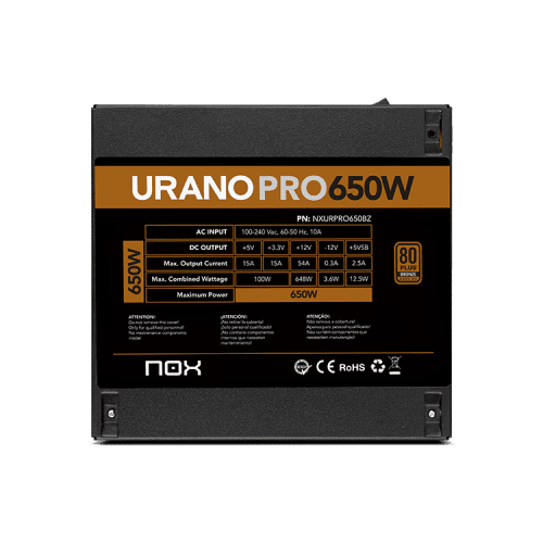 Urano PRO es la nueva serie de fuentes con certificado 80 PLUS Bronze de Nox. Estas fuentes de alimentación han sido diseñadas para garantizar una eficiencia del 85%, brindando una auténtica potencia continua al máximo rendimiento de las configuraciones para entusiastas y profesionales.