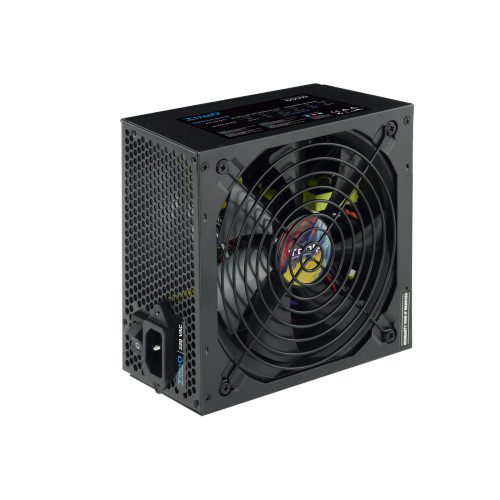 Fuente de alimentación ATX 600W con PFC Activo– Potencia: 600W (Eficiencia>78%)- PFC Activo- Tipo ATX 12V V2.3- Safety +: OCP, OVP, UVP, SCP, OPP, OTP- Ventilador silencioso de 140mm con control automático de velocidad- Compatible con tecnología Crossfire y SLI- Conectores:1 conector ATX (20 + 4 pines)1 conector CPU (4 + 4 pines)1 conectores PCI-E (6 + 2 pines)1 conectores PCI-E (6 pines)3 conectores Molex5 conectores SATA1 conector FDD- Normativas: CE / RoHS- Color: Negro- Medidas del producto: 160x150x85 mm- Medidas del embalaje: 256x172x102 mm