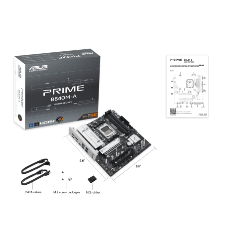 ###PLACA ASUS PRIME B840M-A-CSM,AMD,AM5,B850,4DDR5,192GB,1HDMI+2DP,4SATA3+3M.2,2.5GBLAN,3USB3.2,MATX