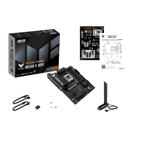 ASUS TUF GAMING B650E-E WIFI. Fabricante de procesador: AMD, Socket de procesador: Zócalo AM5, Procesador compatible: AMD Ryzen 7000 Series, AMD Ryzen 8000 Series, AMD Ryzen 9000 Series. tipos de memoria compatibles: DDR5-SDRAM, Memoria interna máxima: 256 GB, Tipo de ranuras de memoria: DIMM. Interfaces de disco de almacenamiento soportados: M.2, SATA III, Tipos de unidades de almacenamiento admitidas: HDD & SSD, Niveles RAID: 0, 1, 5, 10. Tipo de interfaz ethernet: 2.5 Gigabit Ethernet, Estándar Wi-Fi: Wi-Fi 6E (802.11ax), Wi-Fi estándares: Wi-Fi 6E (802.11ax). Componente para: PC, Factor de forma: ATX, Familia del chipset: AMD
