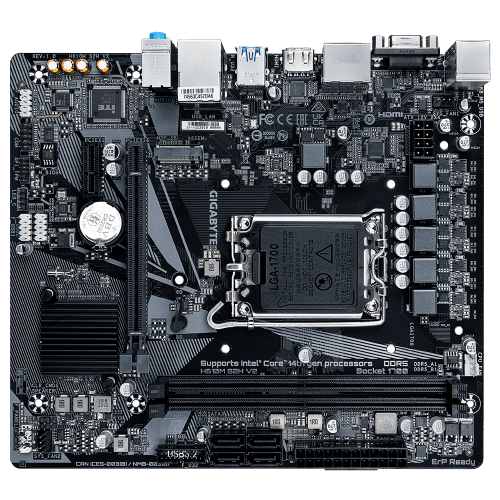 Gigabyte H610M S2H V2. Fabricante de procesador: Intel, Socket de procesador: LGA 1700, Procesador compatible: Intel® Celeron®, Intel® Core™ i3, Intel® Core™ i5, Intel® Core™ i7, Intel® Core™ i9,…. tipos de memoria compatibles: DDR5-SDRAM, Memoria interna máxima: 96 GB, Tipo de ranuras de memoria: DIMM. Interfaces de disco de almacenamiento soportados: M.2, SATA, Tipos de unidades de almacenamiento admitidas: HDD & SSD. Graphics chipset: Intel, Adaptador gráfico: HD Graphics, Máxima resolución: 4096 x 2304 Pixeles. Tipo de interfaz ethernet: Gigabit Ethernet