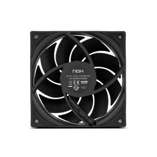 NOX NXHUMMERH400. Tipo: Refrigerador de aire, Diámetro de ventilador: 12 cm, Velocidad de rotación (mín.): 500 RPM, Velocidad de rotación (máx.): 2200 RPM, Tipo de soporte: Rodamiento dinámico fluido (FDB). Ancho: 130 mm, Profundidad: 80 mm, Altura: 155 mm. Color del producto: Negro