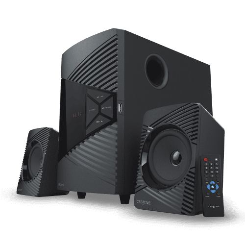 Creative SBS E2500 es un sistema de altavoces de alto rendimiento 2.1 que produce un audio rico y audaz a través de una amplia variedad de opciones de conectividad.Transmita de forma inalámbrica a través de Bluetooth, escuche sus emisoras de radio FM favoritas, o el audio que elija reproduciendo directamente a través de cualquier dispositivo USB. Para conectividad por cable, conéctese a la clavija de entrada auxiliar de 3.5 mm. Además de todo esto, puede acceder fácilmente a los ajustes de reproducción de música y ajustes de audio, directamente en los altavoces, o acceder a las presintonías de EQ con el mando a distancia por infrarrojos.Creative SBS E2500 es la opción perfecta para todas sus necesidades de entretenimiento de audio.Sistema de altavoces 2.1 con drivers de campo lejanoUn sistema de altavoces 2.1 Bluetooth de alto rendimiento que ofrece un rendimiento de audio alto e impresionante con 30 W de RMS y hasta 60 W de pico máximo de potencia. Los altavoces llevan unos drivers con sintonización personalizada y campo lejano para producir una experiencia de audio sorprendente.Subwoofer MDF orientado hacia abajoSubwoofer orientado hacia abajo que mejora el audio con respuestas de bajo envolvente, perfecto para las películas y eventos en directo.Dimensiones del subwoofer (largo x ancho x alto): 155 x 270 x 264 mmDimensiones de los altavoces satélites (largo x ancho x alto): 90 x 75 x 130 mmRadio FMEscuche sus emisoras o sus DJ favoritos con la radio FM analógica que trae búsqueda automática de emisoras. Además para mayor comodidad, el sistema recuerda la última estación FM con la que sintonizó.Bluetooth 5.0Con la tecnología Bluetooth 5.0 más reciente, disfrute de audio de gran calidad de forma inalámbrica desde sus dispositivos, sin cables de por medio.Reproducción MP3 USBOrganícese su propia sesión con su música favorita desde un pen USB utilizando el reproductor MP3 incorporado a través de la funcionalidad plug-and-play.Entrada AuxiliarPuerto de entrada auxiliar de 3.5 mm para la conectividad analógica con cable al ordenador, TV y más.Cómodos botones de controlAcceda con facilidad al control de reproducción de música y volumen desde los botones de control frontales del sistema.Incluye mando a distancia con varias Presintonías de EQPara mayor comodidad, hemos incluido un mando a distancia por infrarrojos para que pueda configurar los ajustes de audio de los altavoces, el volumen y la reproducción de música de forma inalámbrica. También puede seleccionar diferentes presintonías de EQ5 a través del mando a distancia para que se adapten a la música que esté escuchando, o a su estado de ánimo en el momento.