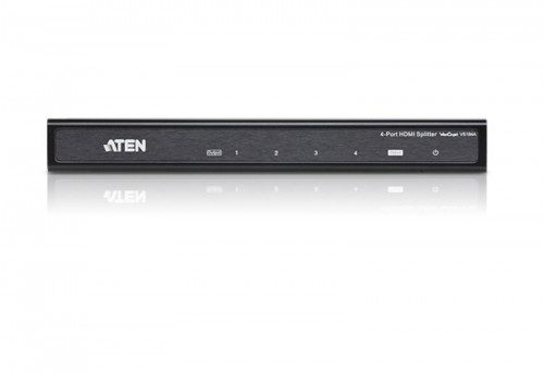 Aten 4 Port HDMI Splitter. Tipo de puerto de vídeo: HDMI, Salida de vídeo: 4x HDMI, Entrada de vídeo: 1 x HDMI Type A Female. Color del producto: Negro, Formatos gráficos soportados: 1920 x 1080 (HD 1080), Formato de vídeo soportado: 1080p. Voltaje de entrada: 5.3 V, Consumo energético: 4,6 W. Dimensiones (Ancho x Profundidad x Altura): 80 x 200 x 25 mm, Peso: 470 g