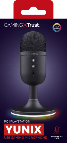 Trust GXT 234P Yunix. Tipo: Micrófono de superficie para mesa, Sensibilidad de micrófono: 32 dB, Frecuencia de micrófono: 100 – 16000 Hz. Tecnología de conectividad: Alámbrico, Interfaz del dispositivo: USB/3,5 mm, Conector USB: USB tipo A. Color del producto: Negro, Tipo de control: Botones, Longitud de cable: 1,8 m. Fuente de energía: USB. Altura: 108 mm, Diámetro: 5,5 cm, Peso del micrófono: 216 g