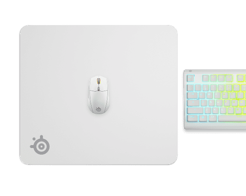 Steelseries 63464. Ancho: 490 mm, Profundidad: 420 mm. Color del producto: Blanco, Coloración de superficie: Monocromo, Material: Microfibra, Caucho, Base antiderrapante
