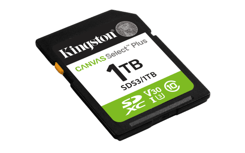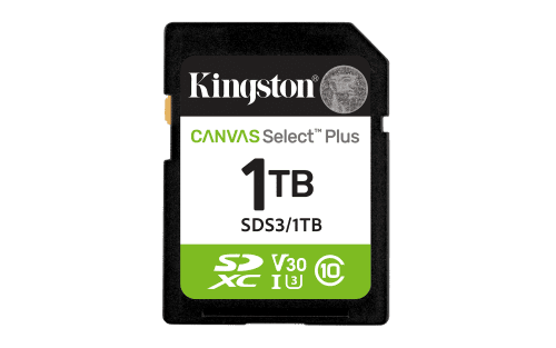 Kingston Technology 1 TB SDXC Canvas Select Plus Gen3 150 MB/s C10 UHS-I U3 V30
