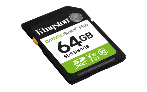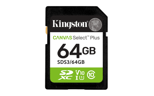 Kingston Technology 64 GB SDXC Canvas Select Plus Gen3 100 MB/s C10 UHS-I U1 V10