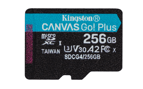 Kingston Technology Tarjeta microSDXC Canvas Go Plus Gen4 de 256 GB, 200 MB/s, A2 U3 V30 y adaptador