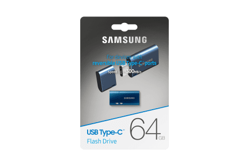 Samsung MUF-64DA. Capacidad: 64 GB, Interfaz del dispositivo: USB Tipo C, Versión USB: 3.2 Gen 1 (3.1 Gen 1), Velocidad de lectura: 400 MB/s. Factor de forma: Tapa. Peso: 3,4 g. Color del producto: Azul