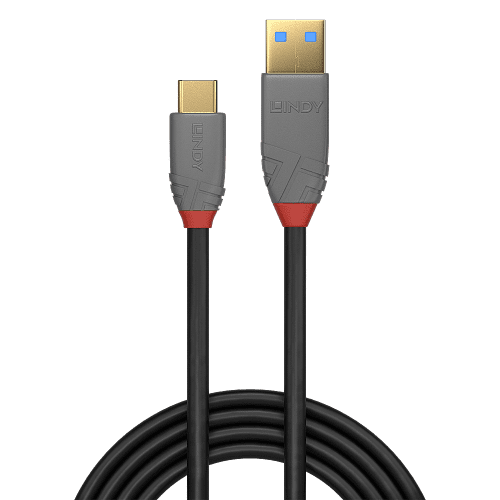 LINDY 1.5M USB 3.1 TYPE A TO C CABLE, 5A PD, ANTHRA LINE (36