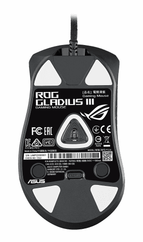 ASUS ROG Gladius III. Factor de forma: mano derecha. Tecnología de detección de movimientos: Óptico, Interfaz del dispositivo: USB tipo A, Resolución de movimiento: 19000 DPI, Tipo de botones: Botones presionados, Cantidad de botones: 9, Tipo de desplazamiento: Rueda, Aceleración (máx.): 50 G. Fuente de energía: Cable. Color del producto: Negro