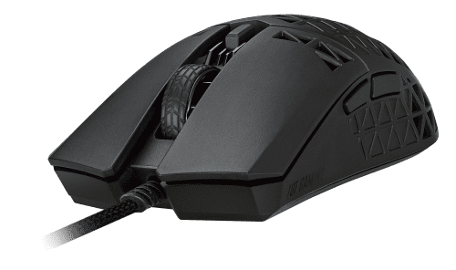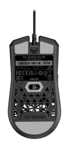 ASUS TUF Gaming M4 Air. Factor de forma: Ambidextro. Tecnología de detección de movimientos: Óptico, Interfaz del dispositivo: USB tipo A, Resolución de movimiento: 16000 DPI, Cantidad de botones: 6, Tipo de desplazamiento: Rueda, Aceleración (máx.): 40 G. Fuente de energía: Cable. Color del producto: Negro