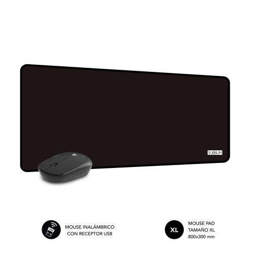 SUBBLIM Alfombrilla con Ratón Harmony Pack Mousepad XL + Wireless Mouse Black