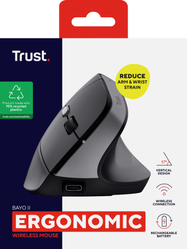 TRUST RATON ERGONOMICO INALAMBRICO BAYO II NEGRO (25145)