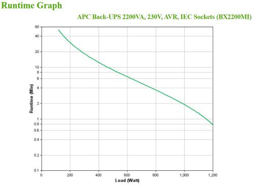 APC BX2200MI. Topología UPS: Línea interactiva, Capacidad de potencia de salida (VA): 2,2 kVA, Potencia de salida: 1200 W. Tipo de salida AC: C13 acoplador, Conector: C19 acoplador, Cantidad de salidas AC: 6 salidas AC. Tecnología de batería: Sealed Lead Acid (VRLA), Tiempo típico de respaldo a carga completa: 1 min, Tiempo típico de respaldo a media carga: 8,5 min. Factor de forma: Compacto, Color del producto: Negro, Longitud de cable: 1,2 m. Ancho: 140 mm, Profundidad: 390 mm, Altura: 190 mm