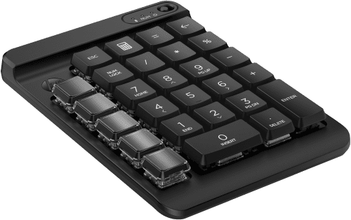Obtén más que números de tu teclado. El teclado numérico inalámbrico programable HP 430 es totalmente personalizable[1] para que tengas un control total. Además del diseño estándar de un teclado numérico, puedes configurar una columna de cinco teclas en blanco según tus necesidades. De hecho, este teclado cuenta con nueve teclas programables con teclas intercambiables para ofrecerte un sinfín de opciones para tu flujo de trabajo.