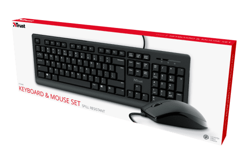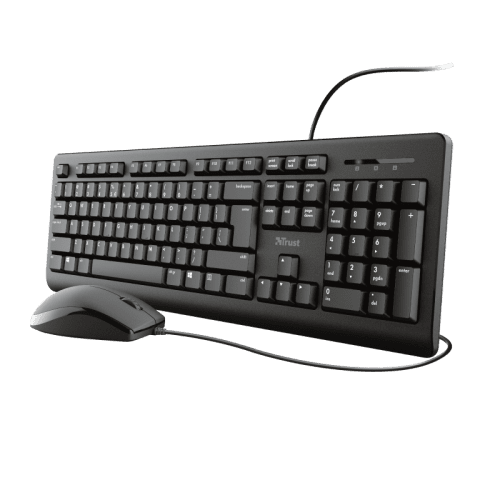 Pack de teclado y ratón silenciosos para trabajar cómodamenteApostar por lo básicoHay teclados de todas las formas y medidas, ¿pero qué pasa si uno solo quiere algo básico? Eso es lo que ofrece exactamente el Trust Primo. Tiene un diseño de tamaño completo, teclas resistentes al vertido de líquidos y permite ajustar su altura. Incluso se suministra con un ratón sencillo ambidiestro para empezar a trabajar tan pronto se conecta este juego en el PC. El teclado Primo responde exactamente a las necesidades de cada usuario.ComodidadUn buen teclado tiene que resultar cómodo. Las teclas de perfil bajo de este teclado de tamaño completo y los soportes plegables proporcionan precisamente la comodidad necesaria que facilita la concentración en el trabajo. No hay que preocuparse de si cae algún líquido en el teclado Primo, ya que su diseño resistente a los vertidos permite seguir trabajando sin problemas. Así que sírvase otra taza de café y a por todas.FácilConecte el cable USB de 180 cm y listo. Cuando hay trabajo por hacer, a nadie le gusta tener que preocuparse por la instalación de software o la configuración de macros. El teclado Primo es un caballo de batalla que permite centrarse en el trabajo.RatónEste juego se suministra con un ratón sencillo y fácil de utilizar para garantizar que se tiene todo lo necesario para empezar a trabajar rápidamente. Su diseño ambidiestro significa que tanto los usuarios diestros como zurdos pueden utilizarlo cómodamente, y su acabado de alta calidad garantiza un agarre firme en los proyectos digitales.