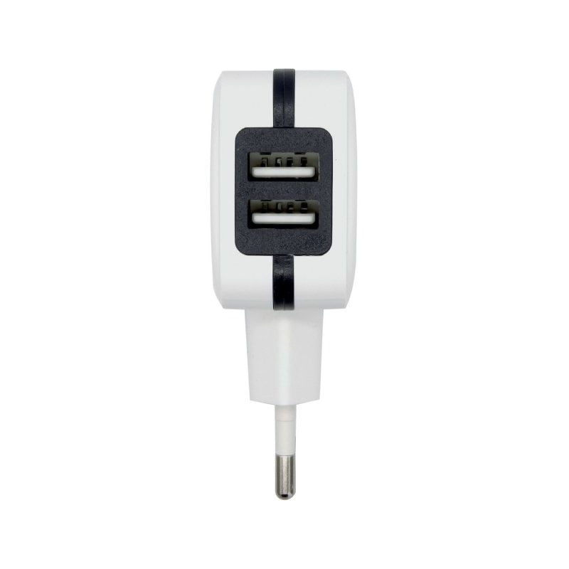 - Cargador de pared con dos puertos de USB. Diseño muy elegante, moderno y práctico.