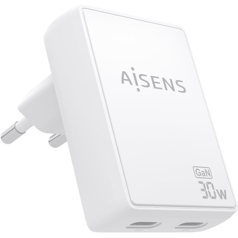 Cargador de pared gan aisens asch-30w2p075-w/ 2xusb tipo-c/ 30w/ blanco Numero de Puertos:2 USB Tipo-C;Potencia Máxima:30 W;Tipo de Cargador:Pared;