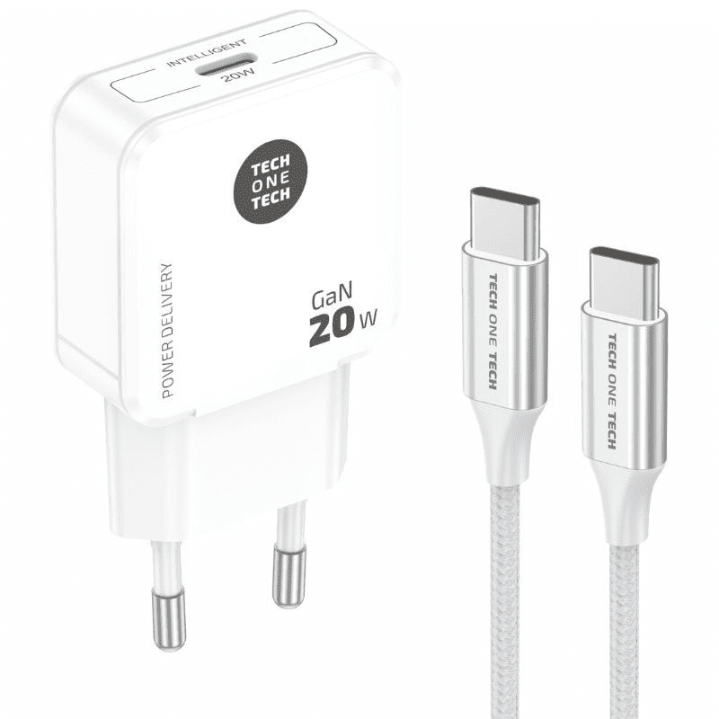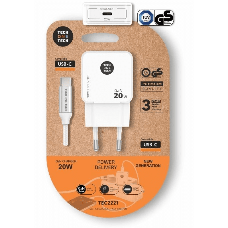 Cargador de Pared Tech One Tech TEC2221/ 1xUSB Tipo-C + Cable USB Tipo-C/ 20W/ Blanco