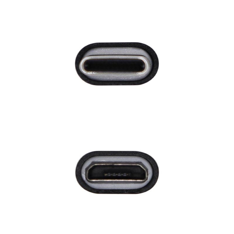 - Adaptador USB 2.0 con conector tipo USB-C macho en un extremo y tipo Micro-B (5Pin) hembra en el otro.