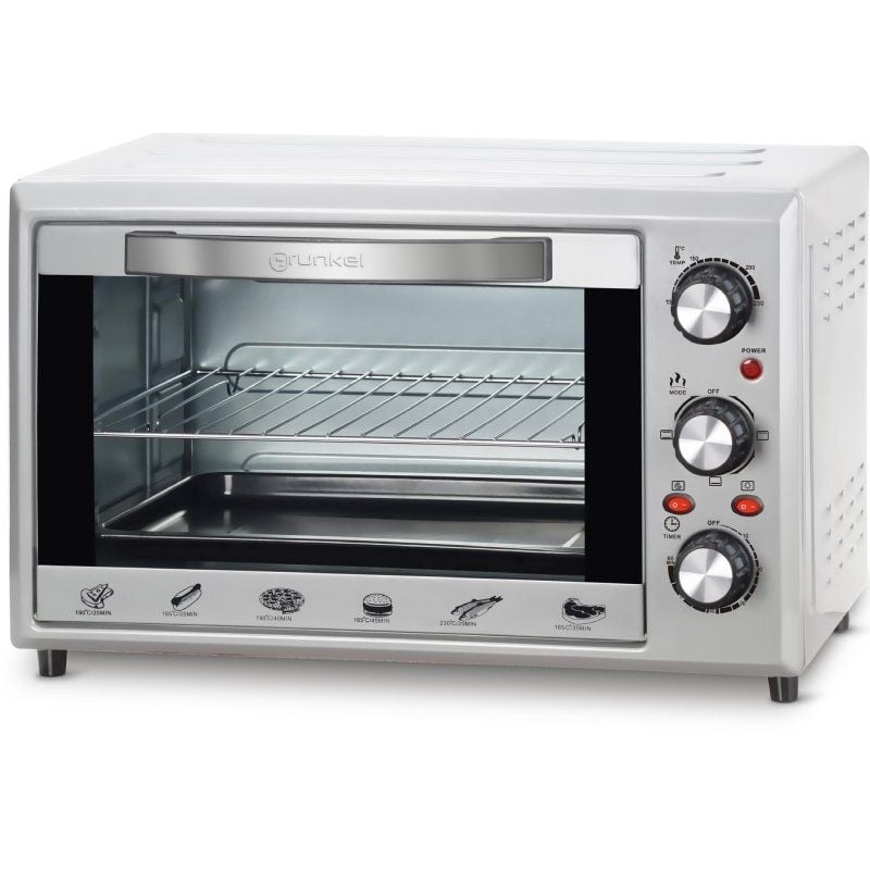 Horno eléctrico de GRUNKEL HR-28SILVER, 28 L, 1600W, convección independiente, 3 modos, luz interior, 60 min, 230 °C, acabado plata.