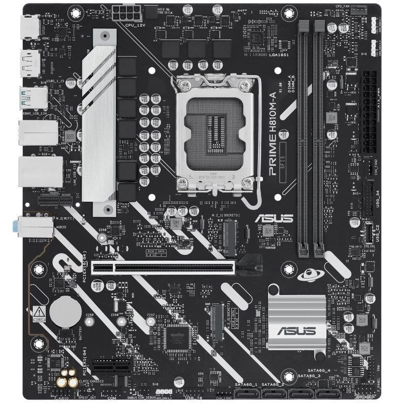 Placa base asus prime h810m-a-csm socket 1851/ ddr5/ pcie 4.0/ micro atx Chipset:H810;Factor de Forma:Micro ATX;InterFace de Disco M.2:2 Ranuras M.2;Procesador:Para Intel;RAM Máxima:128 GB RAM;Socket Compatible:1851;Tipo de Memoria:Memoria DDR5;Zocalos RAM:2 zocalos;