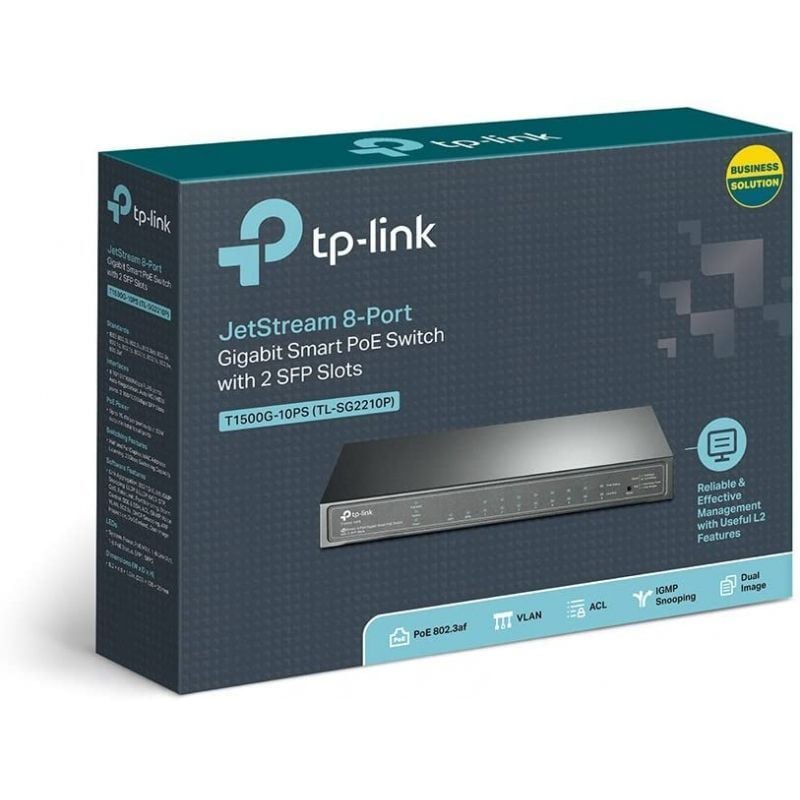 Switch tp-link smart gigabit tl-sg2210p 10 puertos/ rj-45 10/100/1000 poe/ sfp Numero de Puertos:8 RJ45;POE:Si;Puerto SFP:Incluido;Velocidad:10 – 100 – 1000 Mbps;