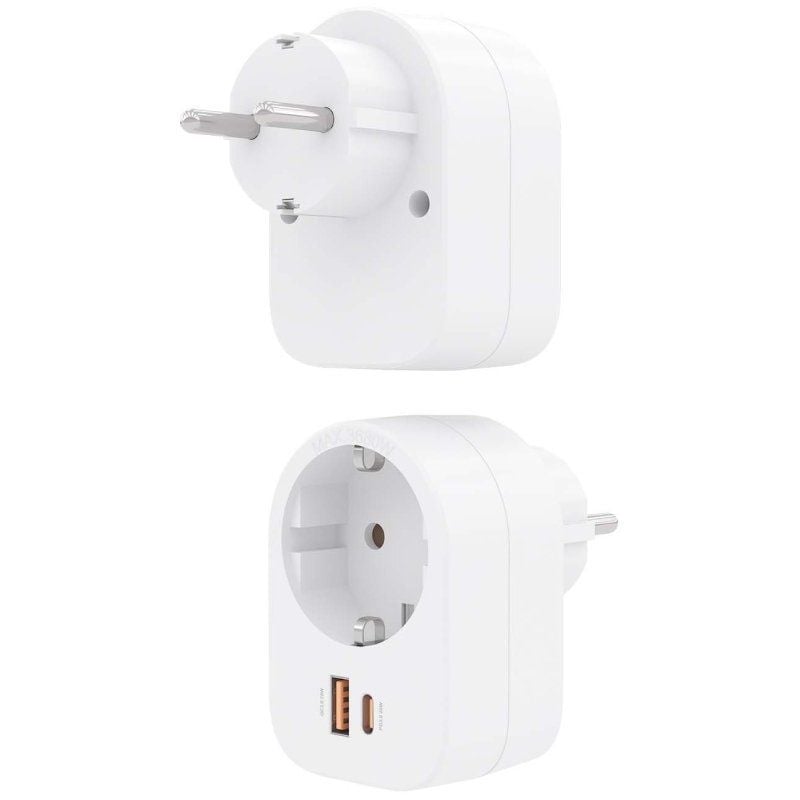 Regleta de pared multifunción con 1 toma Schuko, 1 puerto USB-C 20W PD3.0 y 1 puerto USB-A 20W QC3.0