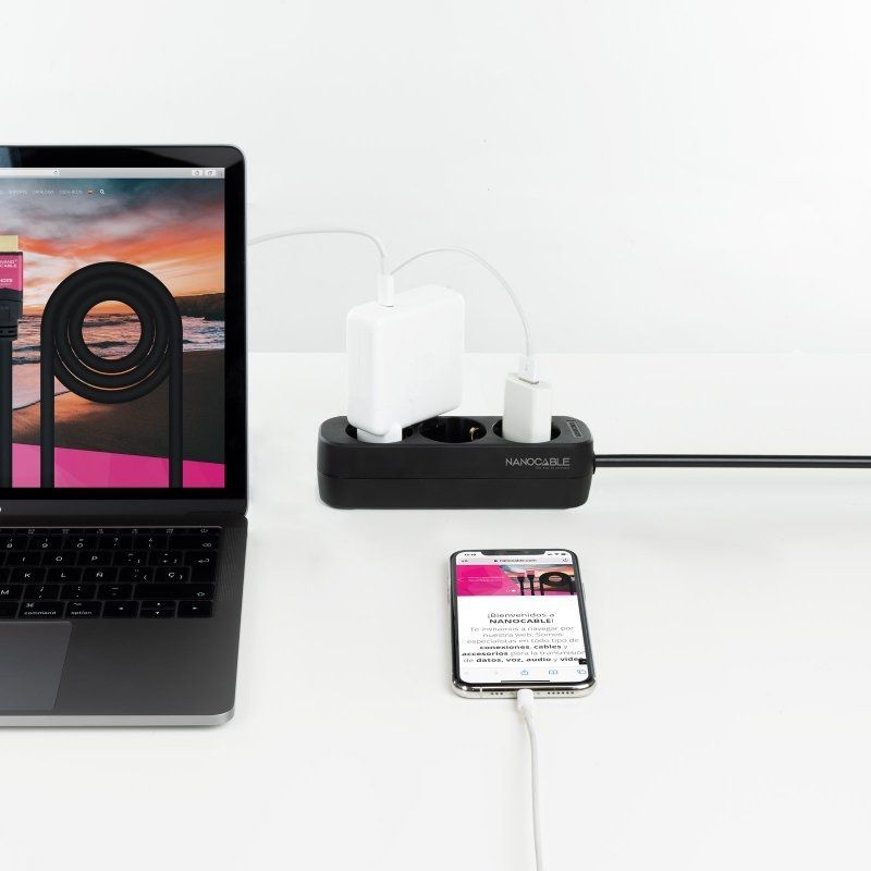 Regleta Nanocable 10.38.0003-NS-BK/ 3 Tomas de Corriente/ Cable 1.4m/ Negra