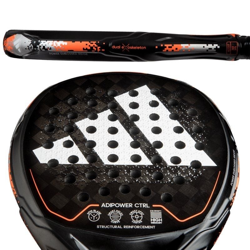 ‘La ADIPOWER CTRL 3.2 es una pala hecha para dominar los puntos sin ‘renunciar a golpes que descosan la bola. La pareja que forman la ‘superficie en CARBONO ALUMINIZADO 15K y la GOMA EVA HIGH MEMORY es la de’ una pala con enorme capacidad de impacto. A esta composición hay que ‘añadirle el refuerzo que supone la tecnología DUAL EXOSKELETON en el ‘marco. Seguimos con una forma de la cabeza redonda, la ideal para el ‘control. Y acabamos con una tecnología, la SPIN BLADE, que es garantía ‘de efectos rebeldes. Dominio y potencia hechos una.