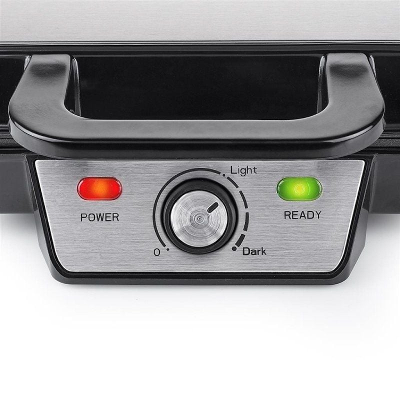 La waflera Tristar tiene una tapa de acero inoxidable que le da un aspecto elegante. Gracias a las luces indicadoras, puedes ver de un vistazo si la waflera está encendida y cuándo está lista para agregar la masa. La waflera también está provista de pies antideslizantes para que se mantenga estable en tu encimera.