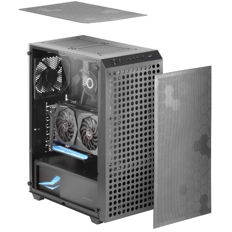La refrigeración es esencial para mantener un funcionamiento óptimo en todo momento, especialmente en configuraciones profesionales. La caja MC-Q3 cuenta con un ventilador de 120mm FDB ultra silencioso trasero integrado y capacidad para hasta 6 ventiladores de 120mm o una combinación de 4 de 120mm y 2 de 140mm. Además, con su diseño abierto de rejilla en el panel superior y frontal y soporte para sistemas de refrigeración líquida de hasta 360mm*, asegura una refrigeración efectiva y un flujo de aire óptimo.