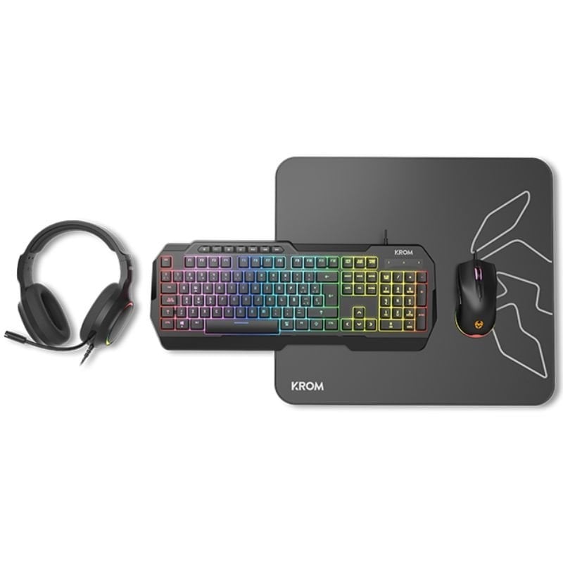 Pack gaming krom kenta/ teclado rgb + ratón + alfombrilla + auriculares Tipo de Combo:Teclado – Raton – Auriculares – Alfombrilla;