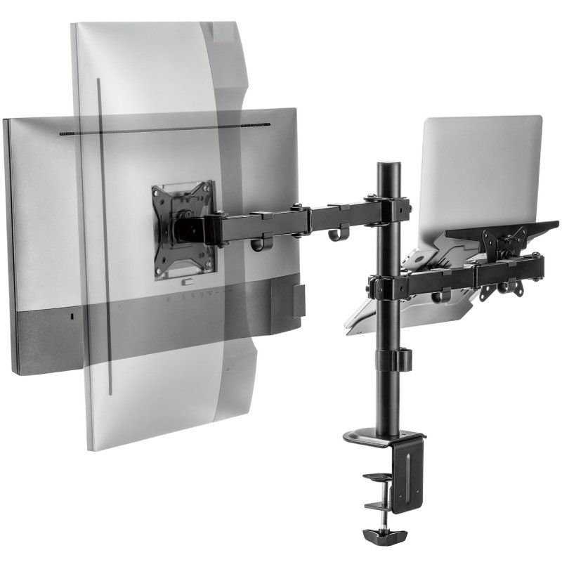 - Soporte de mesa giratorio e inclinable para portátil y monitor/TV (3 pivotes, 2 brazos) de 17”-32”