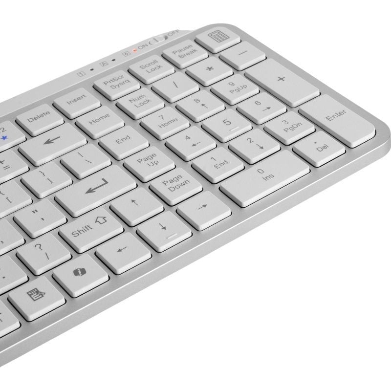 Gracias a su layout dual PC/Mac y a la conectividad Bluetooth, el MK SILENKEYS está pensado para trabajar cómodamente en Windows, macOS y dispositivos móviles como tablets y smartphones compatibles con teclado Bluetooth. Es perfecto para escritorios híbridos, oficinas flexibles y setups de teletrabajo multi dispositivo.