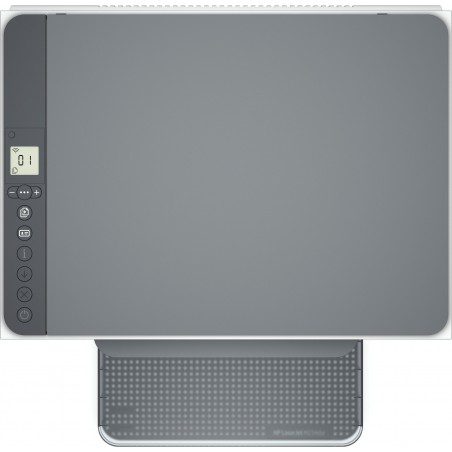Con un peso de 7,6 kg y diseño en color gris, esta impresora ocupa poco espacio sin sacrificar capacidad. Su bandeja de entrada de 150 hojas y salida de 100 hojas permiten ciclos de trabajo frecuentes, con un mínimo mantenimiento.