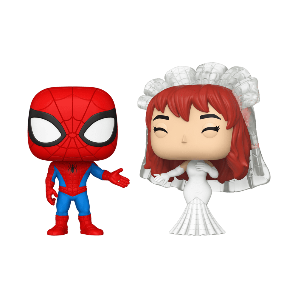 Este pack doble de Funko Pop! es el homenaje perfecto a una de las parejas más queridas del universo Marvel. El set incluye a **Spider-Man y MJ vestidos de boda**, una edición especial ideal para coleccionistas que quieran capturar un momento icónico con un toque de estilo nupcial. Diseñados con los detalles clásicos de la línea Pop!, estos bobbleheads aportan carácter y emoción a cualquier vitrina dedicada a los héroes de Marvel.