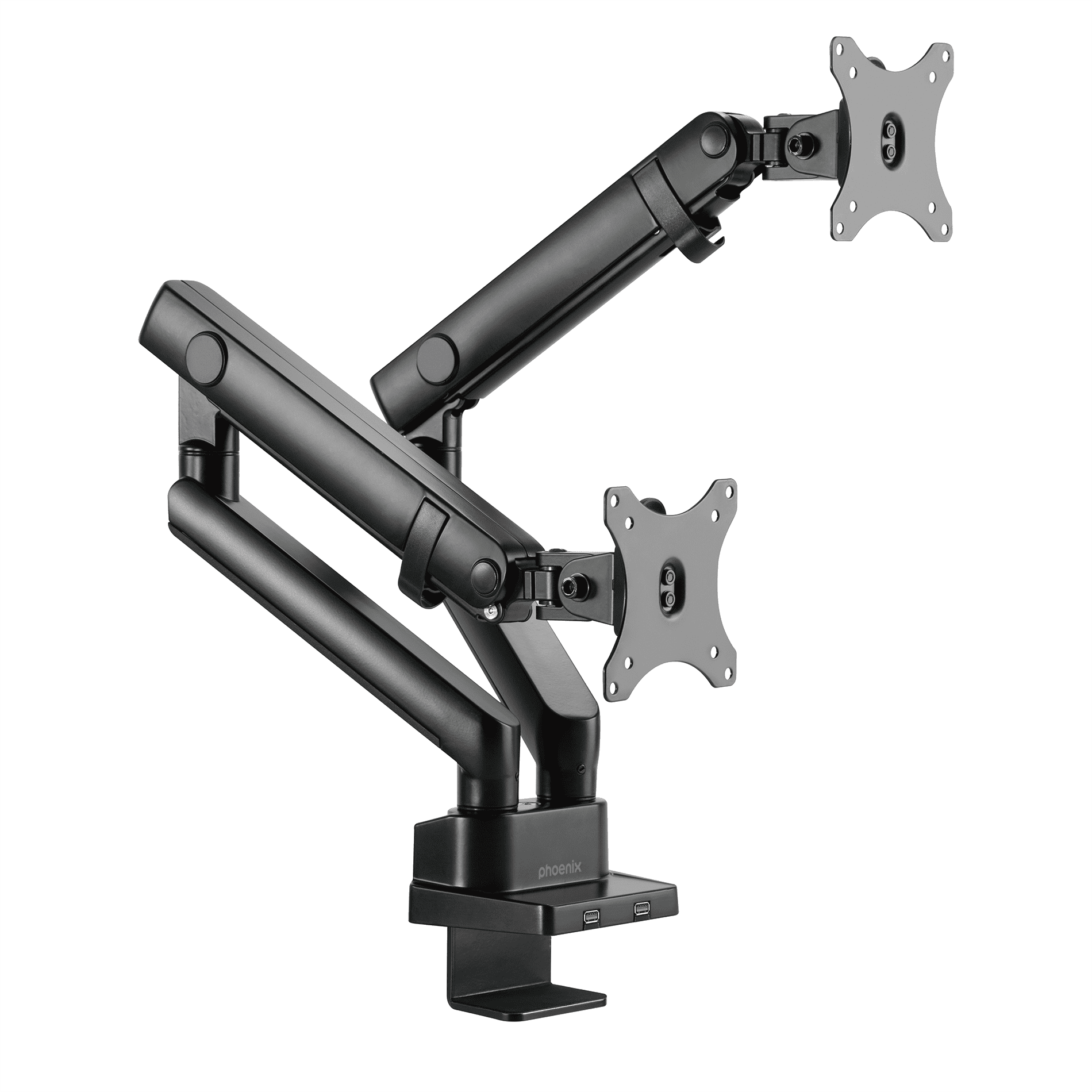 Phoenix mstand2 brazo articulado resorte de gas para doble monitor hasta 27 vesa 75 x 75 – 100 x 100 incluye 2 usb