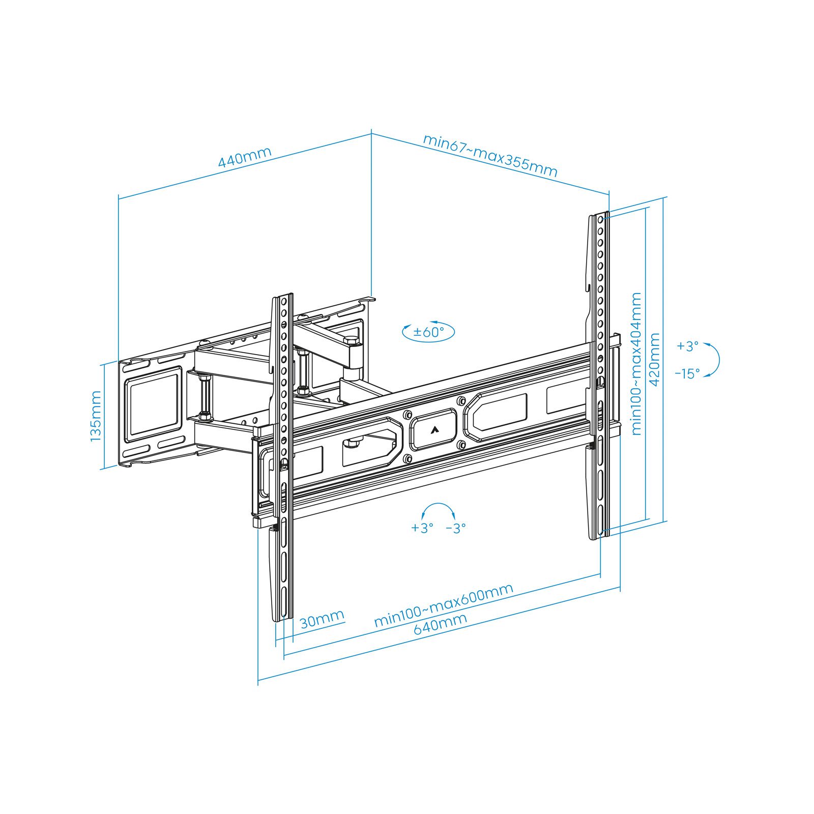 Soporte pared pantallas 37 – 80 pulgadas pulgadas gira incli negro