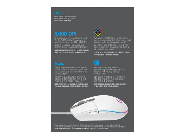 Mouse raton logitech g102 lightsync blanco gaming 8.000 dpi 6 botones