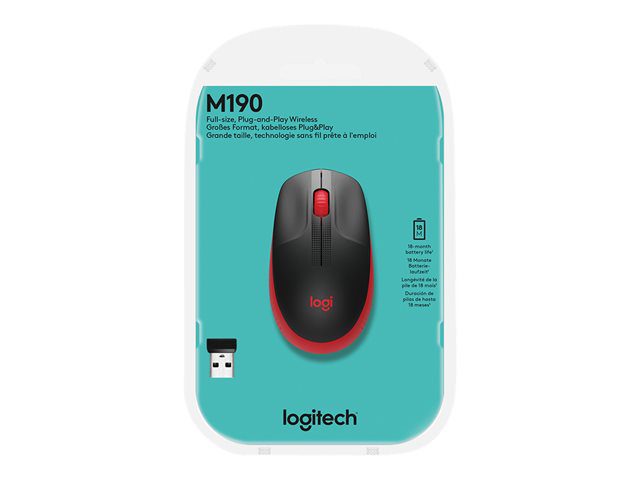 Mouse raton logitech m190 full size optico wireless inalambrico rojo